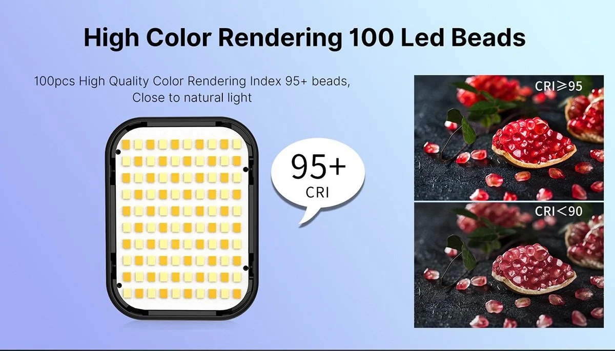 - Genişletilebilir Cold Shoe Tasarımı: Işığın 4 tarafında bulunan kızak yuvaları sayesinde birden fazla ışığı birbirine ekleyerek dev bir ışık paneli oluşturabilir veya üzerine mikrofon takabilirsiniz.
