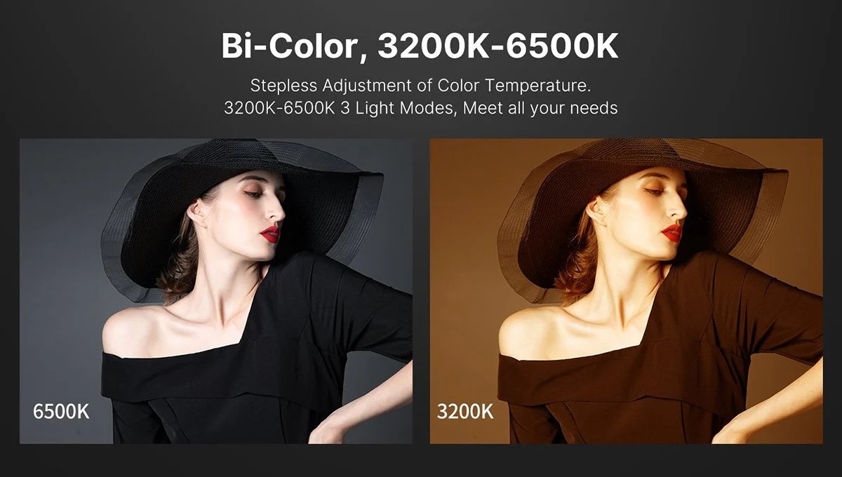 - Ayarlanabilir Renk Sıcaklığı (2500K-6500K): Işığın rengini sarıdan beyaza doğru kademesiz olarak ayarlayabilir, çekimlerinize sıcak veya soğuk bir hava katabilirsiniz.